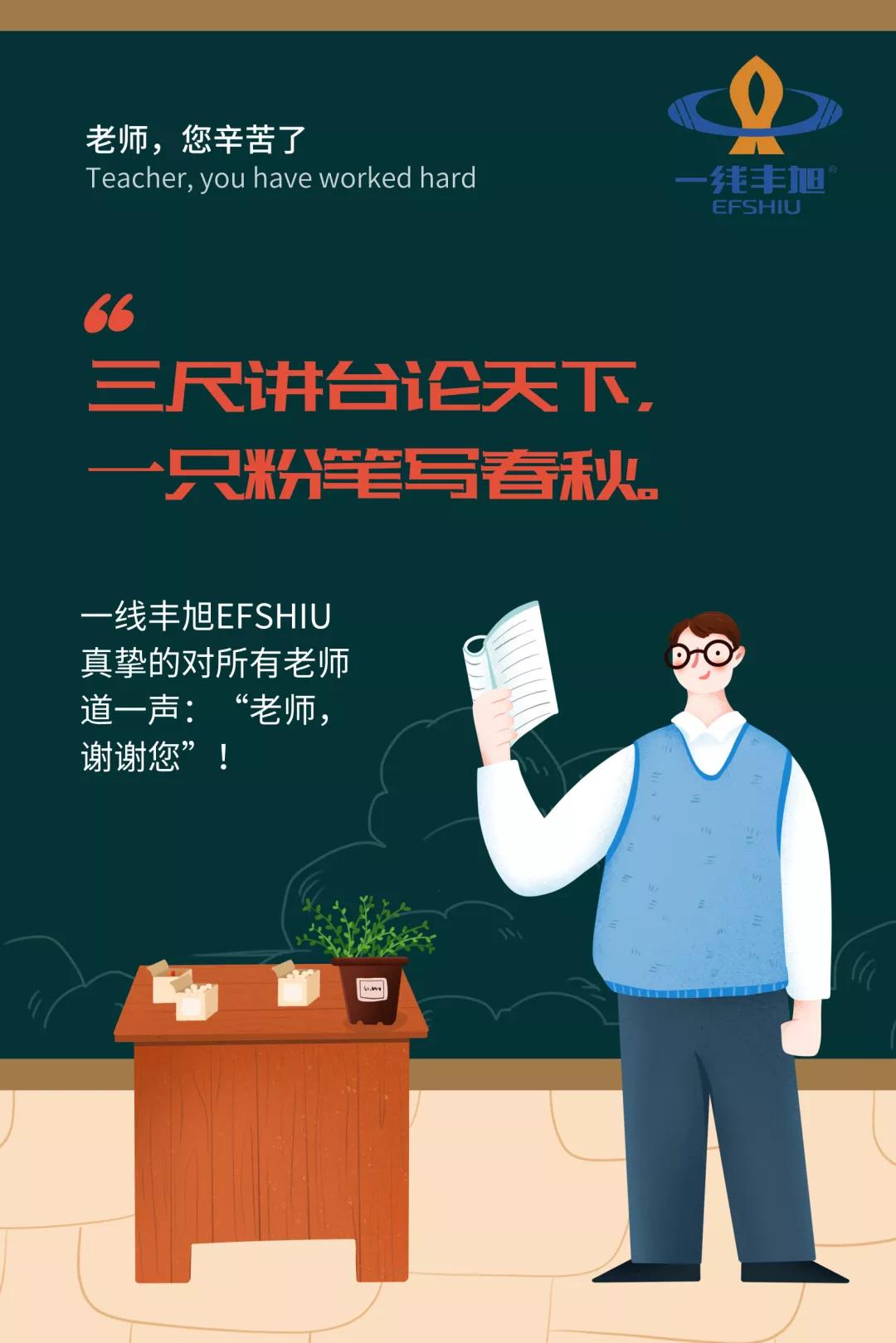 老師,似乎是我們人生中遇到的最特別的一群人。 有人說“一個人遇到好老師是人生的幸運,一個學校擁有好老師是學校的光榮,一個民族源源不斷涌現出一批又一批好老師則是民族的希望”。老師,是我們的筑夢者,引路人! 龍應臺在《目送》中這樣寫親子關系: 師生一場,又何嘗不是這樣? 我們從一個學校離開,進入人生下一個階段,獨自踏上新的旅程;老師們則留下來,帶領一屆又一屆的新鮮面孔繼續(xù)前行。 揮淚告別時,我們口中的“師恩難忘”是真的;時光流逝,我們也不免與曾經熟識的老師漸行漸遠。 一紙薄箋,無以承載我們深深的祝福, 千言盛贊,不能融盡我們濃濃的敬意。 又到教師節(jié),你想起了哪位老師? 打個電話,或者發(fā)條微信,亦或是給他來一段視頻通話說聲祝福吧。 一線豐旭EFSHIU網絡線,愿為您聯(lián)通空間的距離,使您能對恩師道聲: “老師,謝謝您!”