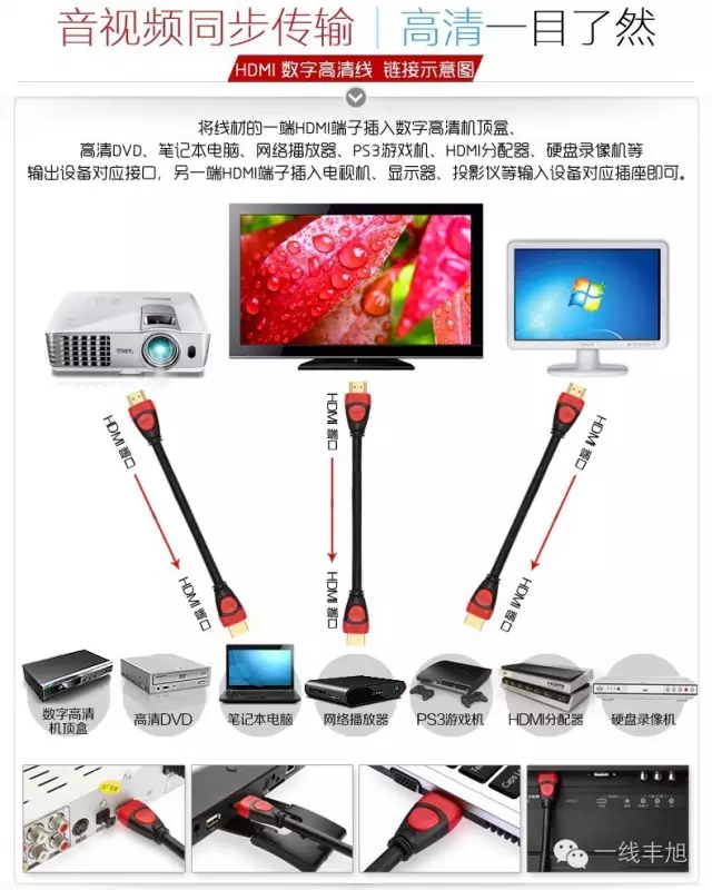 隨著高清設(shè)備的更新?lián)Q代,液晶電視、藍光DVD、高清投影儀等設(shè)備紛紛配置了HDMI接口,眾所周知,以往連接設(shè)備所需線纜較多,整理和布置也很麻煩,現(xiàn)在只需通過一根HDMI高清線就能實現(xiàn)同步傳送圖像和聲音,連線便捷,畫質(zhì)更清晰飽滿,聲音更真實自然。大部分用戶非常關(guān)注如何選購HDMI,然而,正確使用HDMI高清線也非常重要,在這里,一線小編為大家詳細介紹使用HDMI線需要注意的問題。