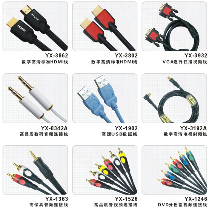 此文關(guān)鍵詞:a3dae1903be5237b26150444d07e5439HDMI高清線,VGA線,3.5音頻線,網(wǎng)絡(luò)線,音箱線,電視線,USB線