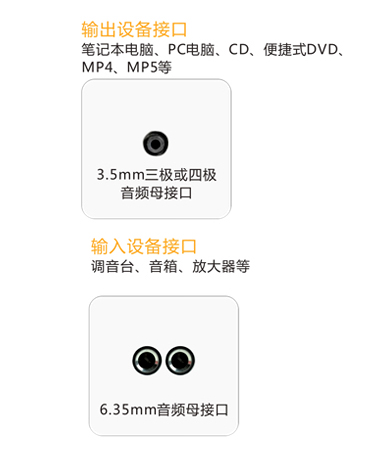 | 調(diào)音臺(tái)音頻線接口 1、標(biāo)準(zhǔn)6.35mm端子接口 2、接駁方便,撥插力度適中 |