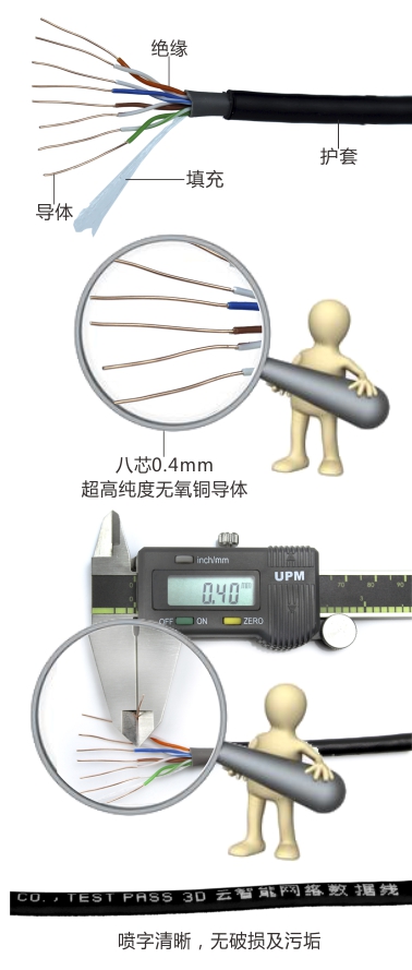 5類非屏蔽室外阻水網(wǎng)絡(luò)線產(chǎn)品特點 產(chǎn)品:5類室外網(wǎng)絡(luò)線,4對單絞+總絞=國際標(biāo)準(zhǔn)設(shè)計并制造。4對絞距的區(qū)別使插入損耗和回波損耗均符合EIA/TIA 568A或568B測試要求;家庭正常使用80米~100米信號無干擾 導(dǎo)體:抗氧化強,降低衰減和損耗 絕緣:4對雙絞線,增強數(shù)據(jù)傳輸信號填充:加強抗拉強度 護套:優(yōu)質(zhì)阻燃PVC原料耐火耐油耐磨耐酸堿增長使用壽命達15年以上 噴米:保證100%足米 |