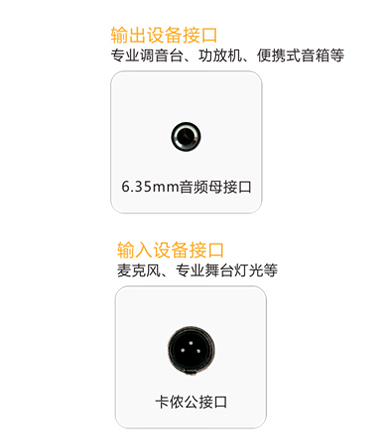 | 調(diào)音臺(tái)音頻線接口 1、標(biāo)準(zhǔn)RCA和卡儂公端子接口 2、接駁方便,撥插力度適中 |