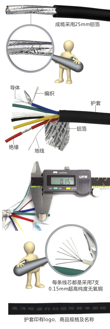 主線采用6mm鋁箔 成纜采用25mm鋁箔 增強(qiáng)視頻傳輸信號,杜絕外界強(qiáng)電磁干擾