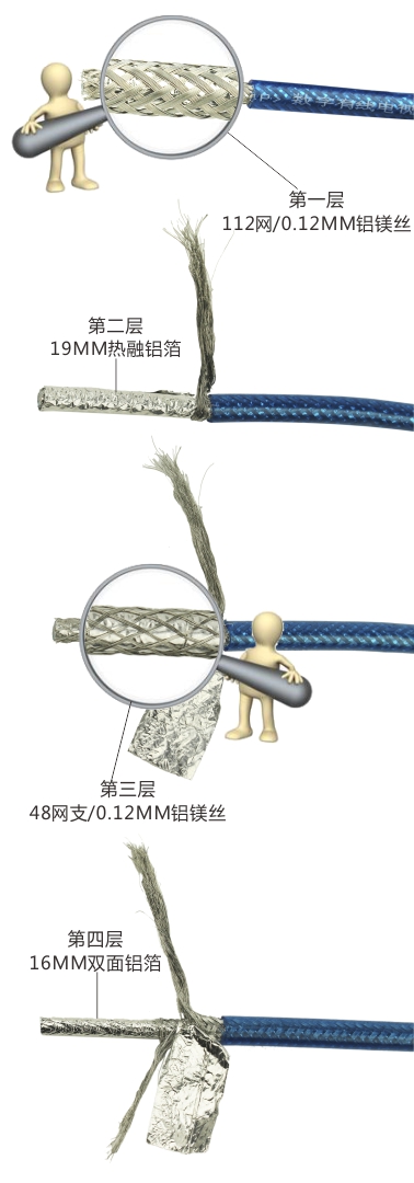 第四層鋁箔 四層屏蔽傳輸過千兆 |