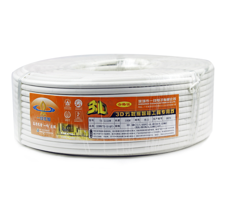| 名稱:數(shù)字高清有線電視線 型號(hào):YX-5159W 長(zhǎng)度:100米 重量:5.03 顏色:米白色 包裝:PE膜 尺寸:直徑290*高98mm 環(huán)保:符合ROHS標(biāo)準(zhǔn) 產(chǎn)地:廣東深圳 專利號(hào):否 結(jié)構(gòu):OD7.5MM[(1/1.02mmBC)+熱融AL+BD(64/0.12AMA)+雙面AL+BD(96/0.12AMA)]*1F SYWV75-5<4P> |