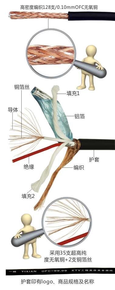 產(chǎn)品:2芯各分35支+2支銅箔絲絞合+2束細棉紗+鋁箔+高密度編織=高保真結(jié)構(gòu)設(shè)計并制造有效提升音質(zhì)并使音頻信號達到最佳效果 導體:抗氧化強,降低衰減和損耗 絕緣:雙絞線,增強音頻信號傳輸 填充:加強抗拉強度使線材圓潤 鋁箔:增強屏蔽信號,杜絕外界強電磁干擾 編織:編織加鋁箔完全杜絕外界強電磁干擾,聲音傳輸清晰不失真 護套:優(yōu)質(zhì)彈性PVC原料耐油耐磨耐酸堿增長使用壽命達15年以上 噴米:保證100%足米