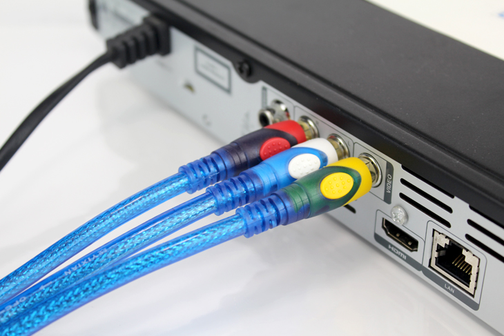 將RCA(紅白黃對應(yīng))端子插入數(shù)字機(jī)頂盒、DVD、VCD插座輸出設(shè)備對應(yīng)接口,另一端RCA(紅白黃對應(yīng))端子插入電視機(jī)或功放機(jī)輸入接口即可